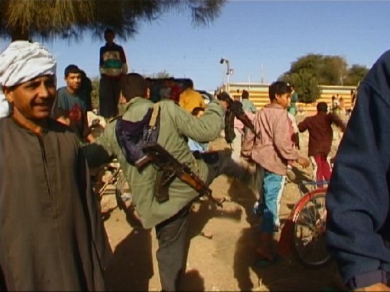 chasse à la kalachnikov un groupe d'enfants curieux. Pendant trois jours, entre Meidoum