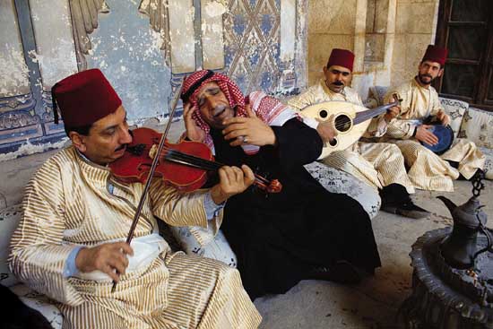 Le directeur du Syndicat des Artistes de Hama, lors d'un concert qu'il nous a organisé Syrie, Hama, février 2000.