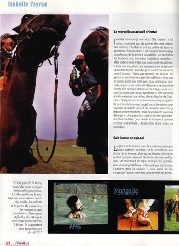 (pour info, le journaliste lui-même n'a pas eu le choix et le journal a décidé de présenter Isabelle comme voyageant pratiquement seule; "faut vendre" qu'ils disaient ! Vive la déontologie)
