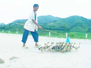 Premiers tours de roue en terre Viet, dans la nuit étoilée. Nous plantons les tentes près d'une cabane au bout d'un chemin bosselé. Au réveil, le paysage met de bonne humeur. Des pics karstiques, des rizières à perte de vue, le ruban sinueux de la route, des petites maisons en bois, des troupeaux de canards poussés à la baguette, des motos à 5 passagers, des buffles nonchalants, des enfants splendides, des vieillards magnifiques, des "I love you, I love you !" lancés à notre intention... Images d'Asie calmes et stimulantes. A part les klaxons qui lacèrent nos tympans, tout nous plaît. Nous nous perdons de vue, Xav' et moi, à Lang Son, première "ville" après la frontière. Qu'importe, il n'y a qu'une route jusqu'à Hanoi, on finira bien par se retrouver... Comme souvent, je pédale en pilotage automatique : le corps fait son boulot mais l'esprit rêvasse, porté par les associations d'idées. Soudain, un gong, des cymbales et des murmures me tirent de cette torpeur. Une foule marche sur "ma" route. En son coeur, huit hommes portent un palanquin décoré comme un char de gay pride. 300 mètres plus loin, un deuxième cortège les rejoint et ils s'enfoncent dans un chemin poussiéreux. Je les suis, puisqu'on me le propose. Des hommes m'aident même à pousser PouetPouet (mon vélo, dont le klaxon à poire se fait plotter depuis le départ). La foule est plutôt gaie car des pleureuses se chargent d'exprimer la peine de tous. Personne ne semble choqué de ma présence. Au contraire, on me pousse à regarder la cérémonie pendant que PouetPouet est sous bonne garde. Deux flûtes entament une complainte énergique. Leur son rappelle les zucras tunisiennes (cf Takhmira: soufisfax.mp3, taille= 985 ko, Carnet de Route Tunisie). Un gong leur répond, les pleureuses sanglotent en rythme et la foule s'empare du cercueil pour le porter en haut d'un tertre. Là, le trou déjà creusé est invisible, tellement chacun s'y presse. Cette pagaille presque joyeuse permet de dédramatiser le dernier Voyage. Point de solennité accablante. Il est venu, il part, on lui dit au revoir. La terre est jetée par seaux, les conversations reprennent, la Vie ne peut s'arrêter. Je redescends accompagnée de sourires. Bouleversée de ne pas l'avoir été par effet de foule. La mort avec un "m" minuscule, la Vie avec un "V" majuscule. Conceptions différentes, belles comme une humanité aux multiples visages. En fin de journée, un vélo cerné d'enfants s'arrête à ma hauteur. Xavier aussi apprécie ces petites routes de montagne, surtout qu'elles descendent plus qu'elles ne montent. La nuit tombe vite en Asie. Le crépuscule dure 1/4 d'heure. Des lucioles clignotantes nous guident vers le prochain boui-boui. Ce soir, il s'agit d'une maison sur pilotis. On y accède par un petit pont de bambous, d'une solidité douteuse. A l'intérieur, une télé éclaire les murs de planches disjointes. Lumière vert gazon : match de foot Chine-Vietnam. Le Vietnam mène 3 à 2, donc nous sommes les bienvenus. On nous autorise à entrer les vélos et tant qu'on y est, à dormir dans la salle à manger. Pendant que son père commente les penaltys , Nan nous sert l'inévitable soupe aux nouilles et au porc (notre repas triquotidien depuis Yangshuo). A 20 ans, Nan est déjà mère d'un adorable poupon bridé. Elle travaille tous les jours dans ce restaurant perdu, de 5h du matin à minuit. Passé, présent, avenir : sa vie consiste et consistera à servir des soupes, ici, dans cette maison sur pilotis. Pourtant, un sourire irradiant ne la quitte pas. Elle nous soigne comme si nous avions besoin d'amour. Elle dont le mari n'est pas là, elle dont le père ne décolle pas de la télé, elle qui aurait tant le droit d'être aigrie.
