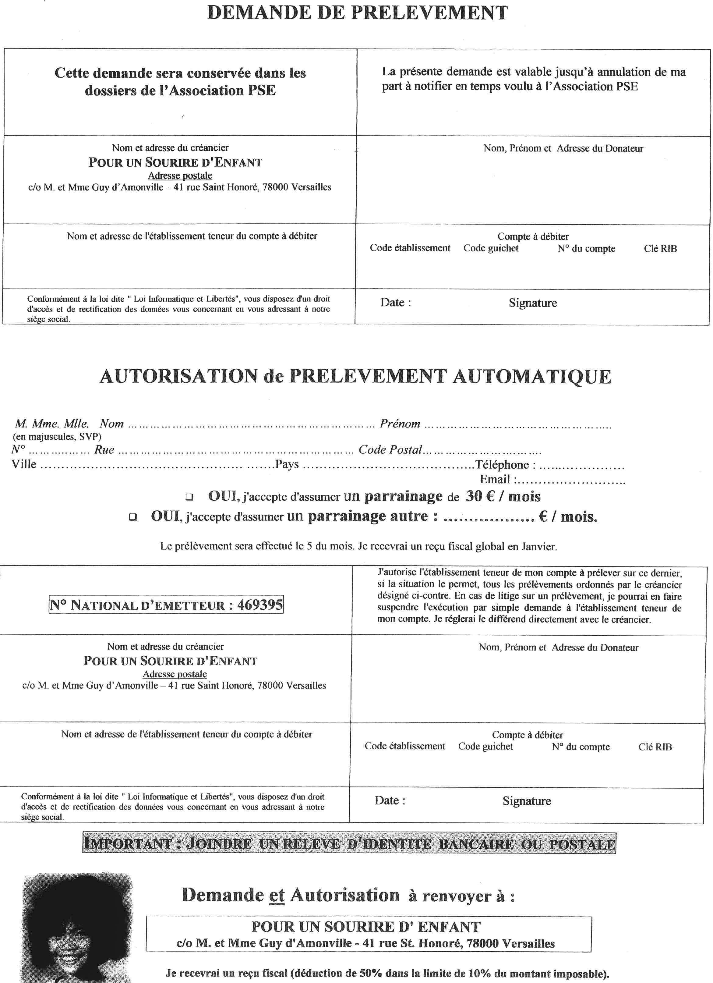 pour le compte de l'association Pour un Sourire d'Enfant.